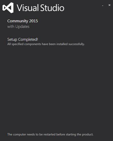 After the restart, go to Start button >> All programs >> double click Visual Studio 2015.