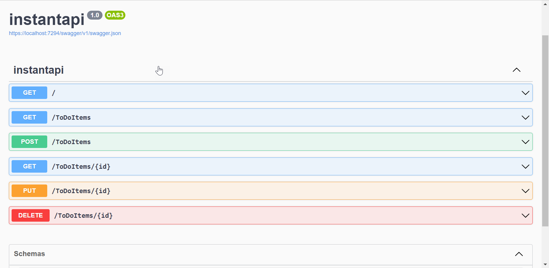 By default we will have the endpoint to get, getbyid, create, update and delete elements. This is a great way to create really quick APIs for proof of concept, demos and, try new libraries and technologies.