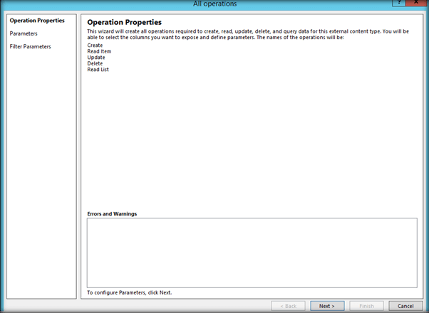 If we want to get only a subset of the data, we can specify filter parameters, else complete the creation of the content type by clicking Finish.