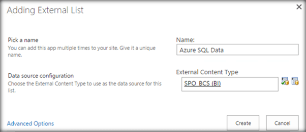 We will now create an external list, which is based on the content type that connects to Azure SQL DB.