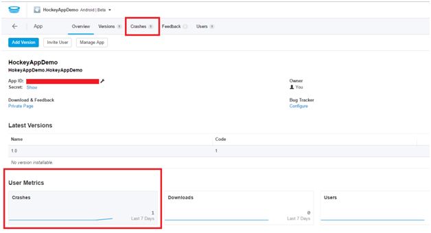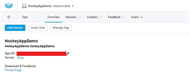 Copy this App Id and pass it as a parameter to CrashManager.Register method in MainActivity.cs file. (CrashManager.Register(this,”<YOUR APP ID>”))