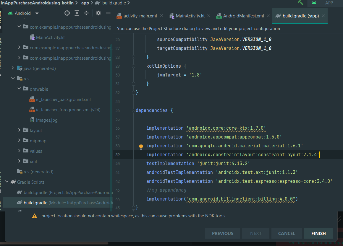 In-App purchase is a payment solution of the Google Play billing system. It is a system that allows the user to sell digital products and content in our application. Google Play provides support for android applications to implement in-app purchases in android through Google Play In-App Billing API and the Play Console. In this article, we will be learning how to integrate Billing into our app for testing purposes. Later we go through the same process to implement it in a real applications through the play console.