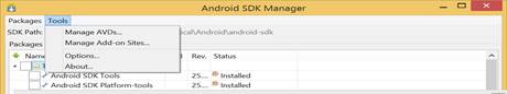 Then, add SDK tools to the PATH variable - %ANDROID_HOME%/tools