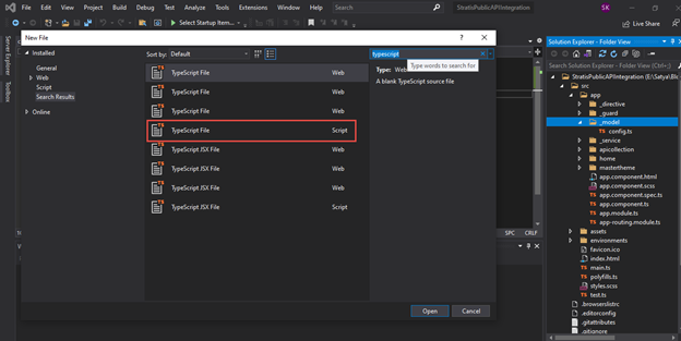 We can add the model using the command and also manually as described below: In _model folder right-click–> add a new item –> Add typescript File and rename it according to your structure.