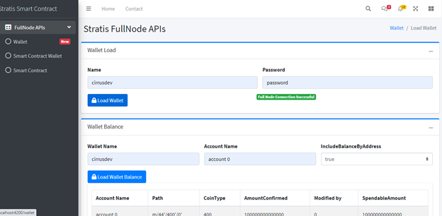 Endpoint: /api/Wallet/load: Wallet Load is to make sure the private chain is running smoothly and your app is connected with the chain.