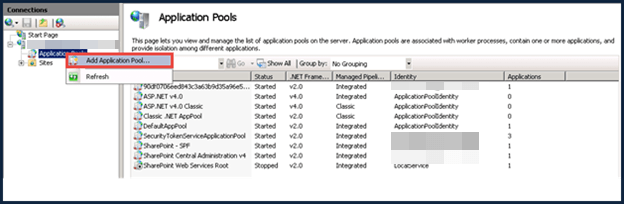 Right click on “Application Pools” and then click on “Add Application Pool”.