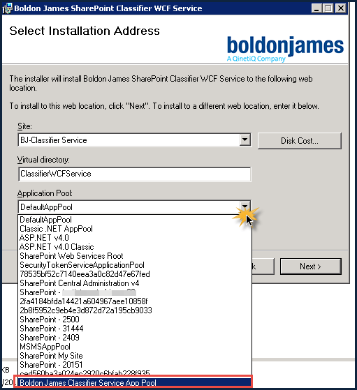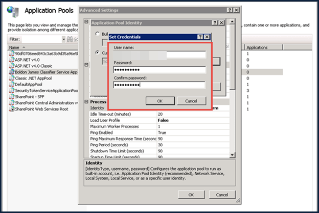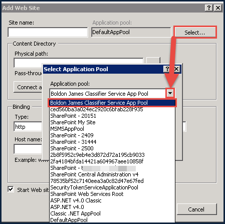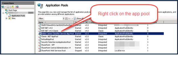 Before you go ahead and integrate Boldon James Classifier with SharePoint, you need to set up an application pool and web site which can be used by Boldon James Classifier Service.