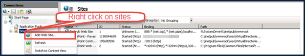 Navigate to IIS and right click on “Sites”, then select "Add Web Site” option.