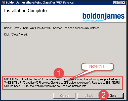 - Installation of appropriate Boldon James Classifier Service (2010/2013).