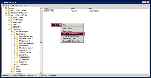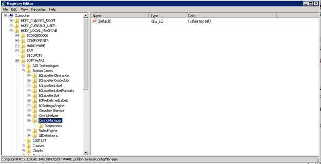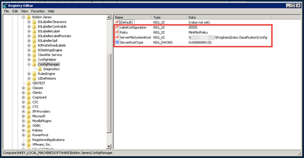 “HKEY_LOCAL_MACHINE\SOFTWARE\Boldon James\ConfigManager”.