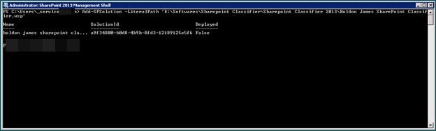 Install-SPSolution –Identity “boldon james sharepoint classifier.wsp” –GACDeployment