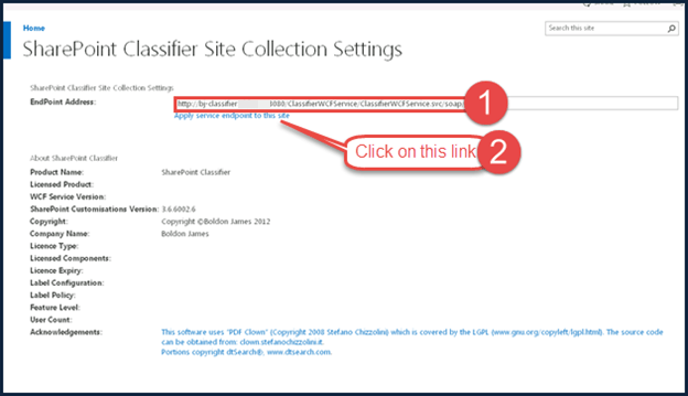 Configure SharePoint Site(s) to avail Boldon James Classifier Service