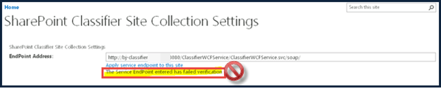 The endpoint address is the one which you noted at the time of finishing the Boldon James Classifier Service installation. (i.e. http://www.sharepoint.com:8080/ClassifierWCFService/ClassifierWCFService.svc/soap/ ).