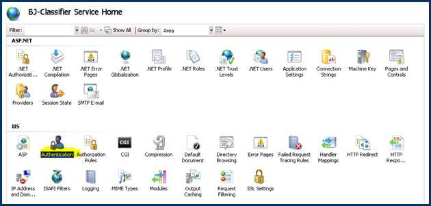 In order to fix this issue, again go to IIS Manager, select the Boldon James site, open “Authentication” module and enable “Basic and Windows Authentication”.
