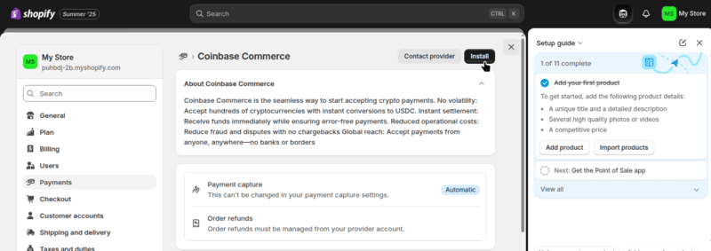 Step 2: Install the Shopify Coinbase Commerce App or visit Shopify