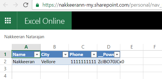 For an example, we will consider an address book sheet available on OneDrive for business. We will provision an app for business users to manage Excel sheet data with the help of an app.