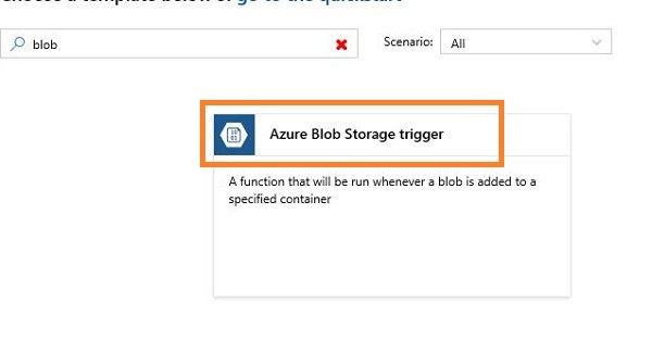 Select "Azure Blob Storage trigger" template from the available templates.