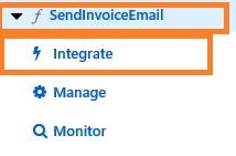 Go to the GenerateInvoice function and select "Integrate", as shown in the below figure.