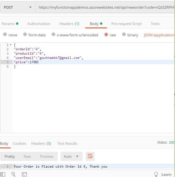 Let’s trigger the function using POSTMAN, for testing.