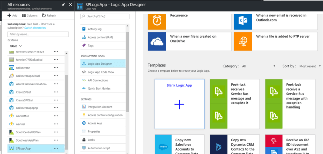 Once created, select the app from all resources option. Now, select logic app designer from the development tools. Now, click on blank app.