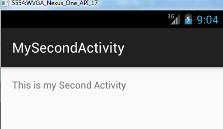 When the user clicks the button, the method showSecondActivity is called. In this method, an object of Intent is created and this is a type of Explicit Intent. This Intent provides the external class to be invoked. The startActivity() method invokes another activity only. It does not return a result to the current activity.
