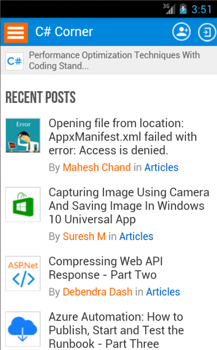 Click on the button <Lauch C# Corner>, it displays as below screenshot.