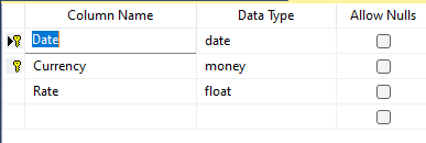 We have a table with three columns: Date, Currency, Rate, we need to get a output as