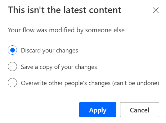 If multiple users make changes to the flow simultaneously, Power Automate detects conflicts during the flow save operation and presents appropriate options to the user to minimize conflicts.