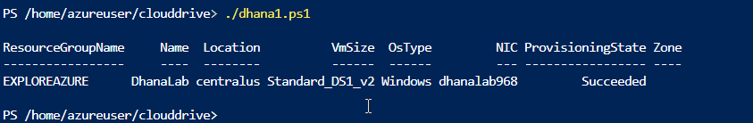 Here in the clouddrive lets create dhana1.PS1 file using the below code.