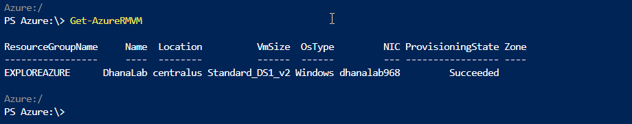 In our Cloud shell window, we also have powershell commands integrated to execute. To check that, lets execute the powershell command to list all the Virtual machines available on the current subscription.