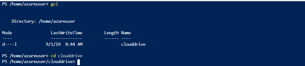 When everything is created, the cloud shell window will be displayed with the azure drive on the screen.