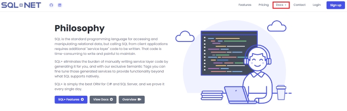 Step 1. Open SQL+ documentation and click on the top menu list on Docs.