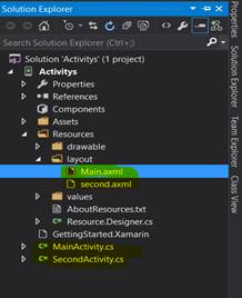 Here, I have added layout name as “second.axml” and Activity as “SecondActivity.cs”. Now, our project contents two .axml and two activities.