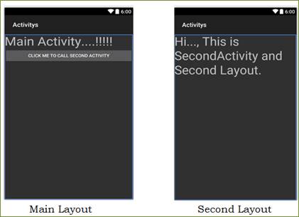 As I discussed previously, there are two types of scenarios. First is to call second activity from main activity without exchanging the data or the information. Hence, in this, we need to call one activity to second activity and then we will pass the data or the information between the activities.