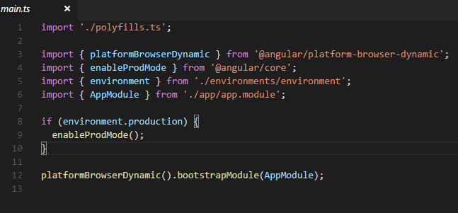 - Bootstrap- It defines the main component to be Bootstrap in main.ts file.