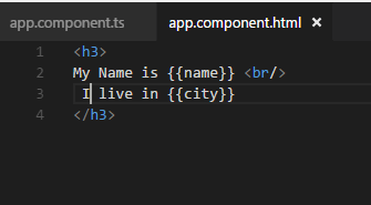Now, we use these properties in “app.component.html” file, which is the template file for the component, and define HTML layout as shown below.