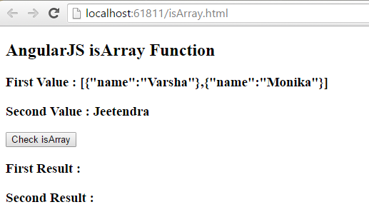 - <input type="button" ng-click="isArray()" value="Check isArray" />