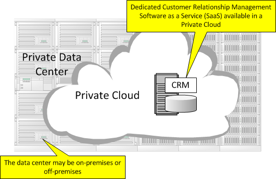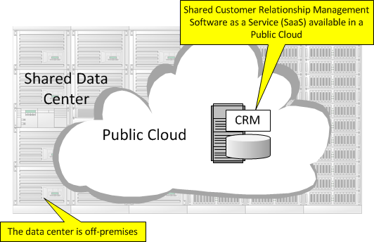 The following figure uses Customer Relationship Management (CRM) Software as a Service (SaaS) to illustrate a Public Cloud.