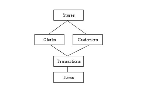 Data in this type of database is structured hierarchically and is typically developed as an inverted tree. The "root" in the structure is a single table in the database and other tables act as the branches flowing from the root. The diagram below shows a typical hierarchical database structure.