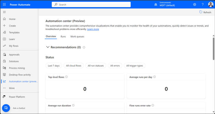The Automation Center is a centralized place to manage all your automation activities. It provides an overview of your automation landscape and helps you monitor and optimize your workflows.