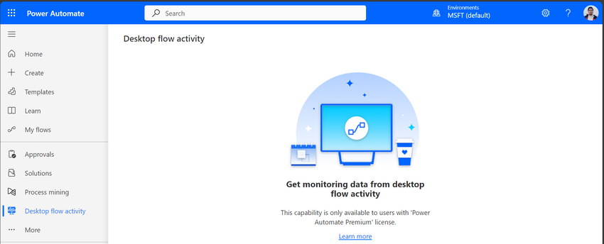 This section tracks the activities of your desktop flows. You can monitor the performance and status of flows running on your desktop.