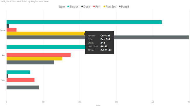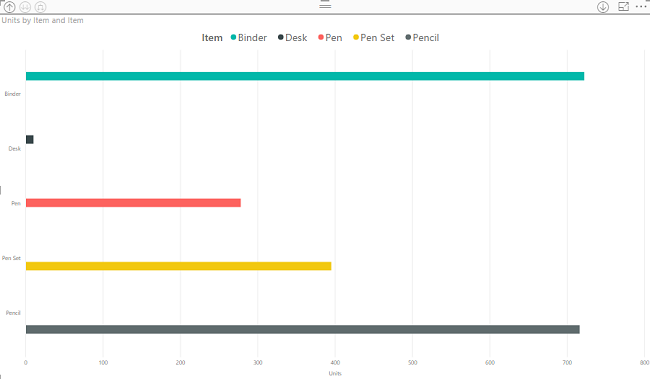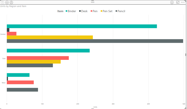The below screenshot shows clustered bar chart. This chart shows values (sum, count etc.) on X-axis and group by data on Y-axis.
