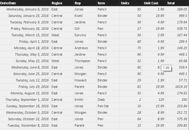 Ex: We will learn this chart using Sales data which has the following columns, and the data will look like this.