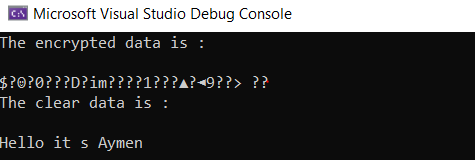 var encryptedData = aesObject.EncryptCbc( Encoding.Default.GetBytes("Hello it s Aymen"), aesObject.IV);