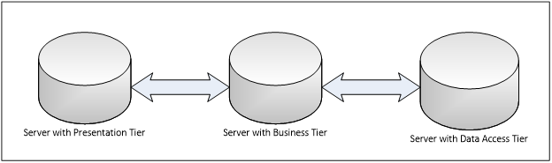 An enterprise Web Application may have the tiers mentioned below and each tier may be running on a different machine or a Server.