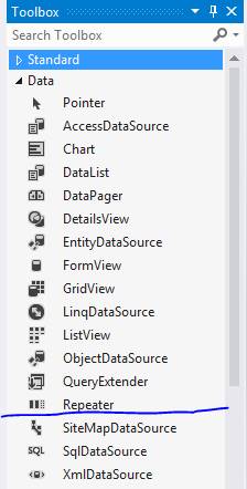 Drag and drop the Repeater Control from the Toolbox, and configure.