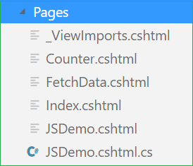 Similarly, add one more file JSDemo.cshtml.cs. This file will contain the C# code to handle our business logic.