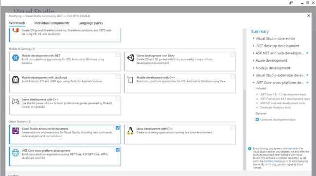If you are using Visual Studio 2017 version, then it is very much easy to install the .NET Core since this feature is already included in the Visual Studio 2017 installation package. So, just open the Visual Studio Installer and select the .NET Core Cross-platform Development workload and complete the installation.