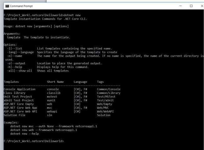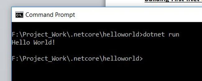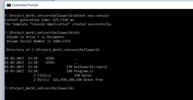 Open the Command Prompt (or Terminal) and create an empty folder, calling it HelloWorldProg. Now, move to within that folder and run the following command in the command prompt – dotnet
