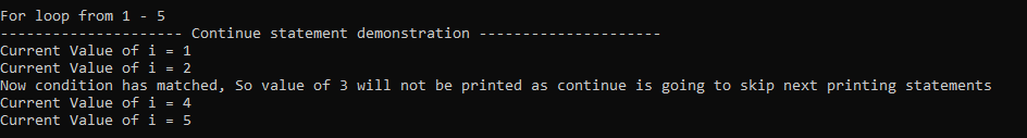 - Console.WriteLine("--------------------- Continue statement demonstration ---------------------");